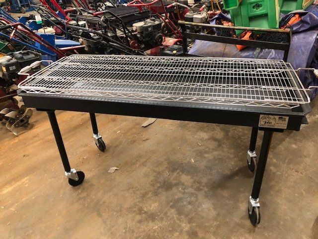 A large warehouse filled with lots of lawn mower equipment
